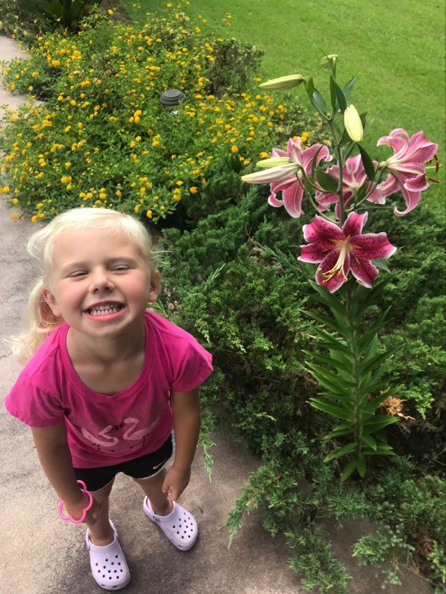 I had Maeley pose by my stargazers the other day.
