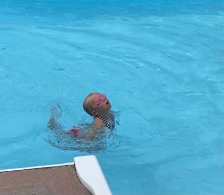 Maeley continues to improve each time she swims and yesterday she swam across the width of the pool, coming up and taking a couple of breaths in the process !! We are so proud of her efforts and she absolutely loves it.