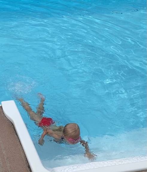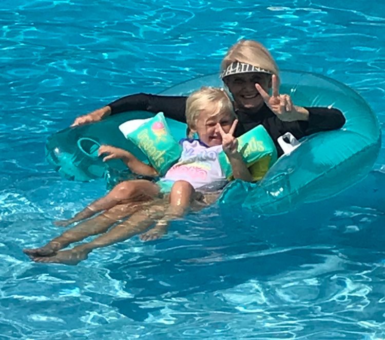 We’ve been working so hard this summer to get this little girl out of floaties and swimming ! She was so dependent on them she didn’t want to get in without them.