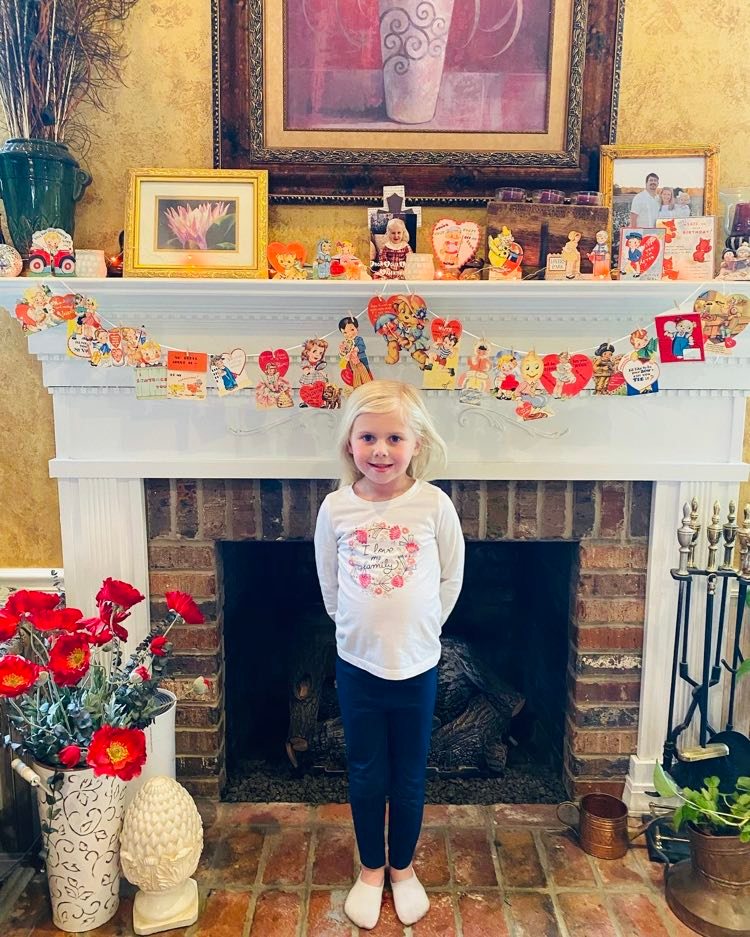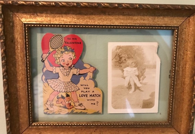 I have a few vintage valentines from my Mom’s grade school years that she had saved and I love to decorate with! I also have a special one that’s framed which belonged to my Aunt Bernice, given to her by her best friend, Virginia, with a picture of my aunt at Virginia’s birthday party. My mom and my aunt both treasured these cards because they treasured their relationships with friends.