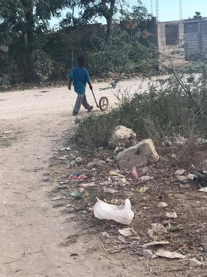 I thought about that memory when I saw this little boy (below) in Haiti rolling a wagon rim down the road.