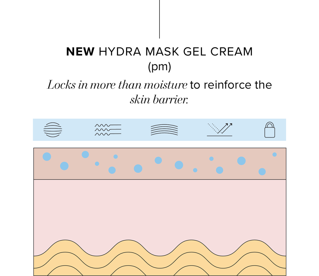 Our new Hydra Mask Gel Cream is used at night to lock in the moisture that’s in your skin.
